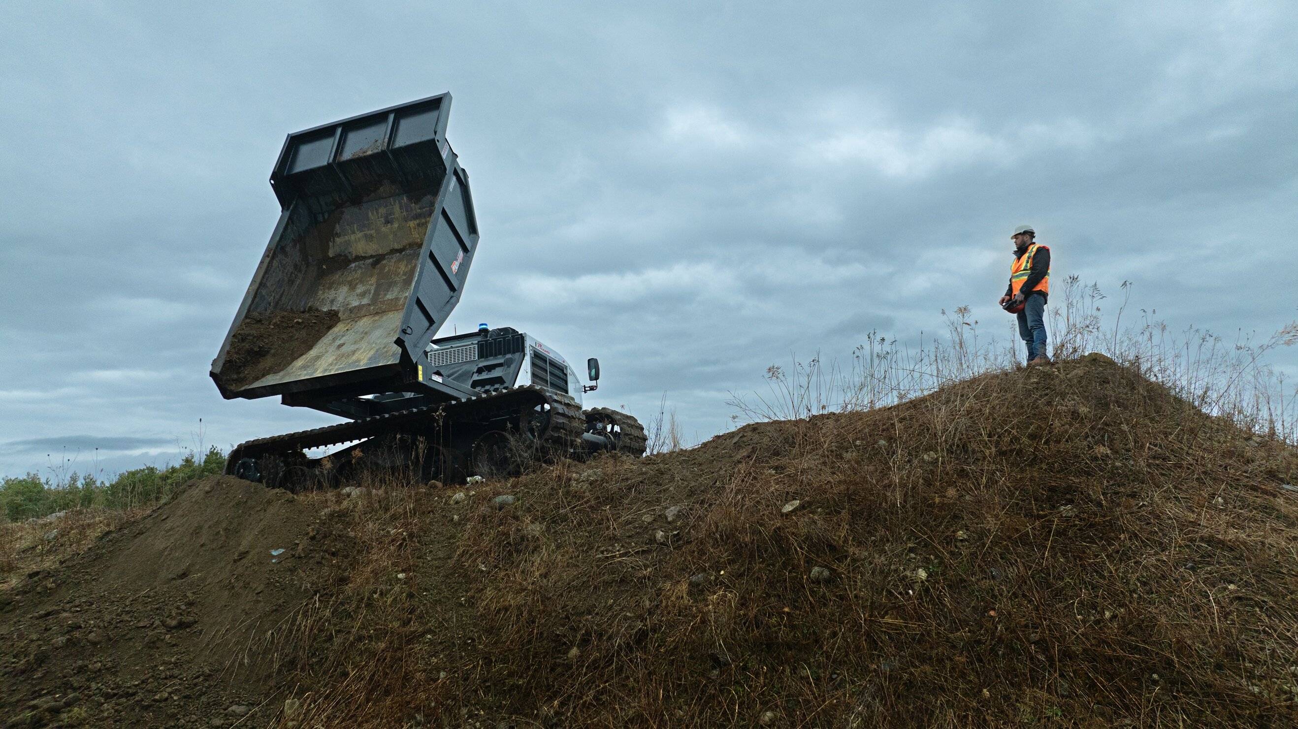 No backing up needed. The Panther T14R powers through rough terrain with 14-ton capacity, 360° dump body, and low ground pressure