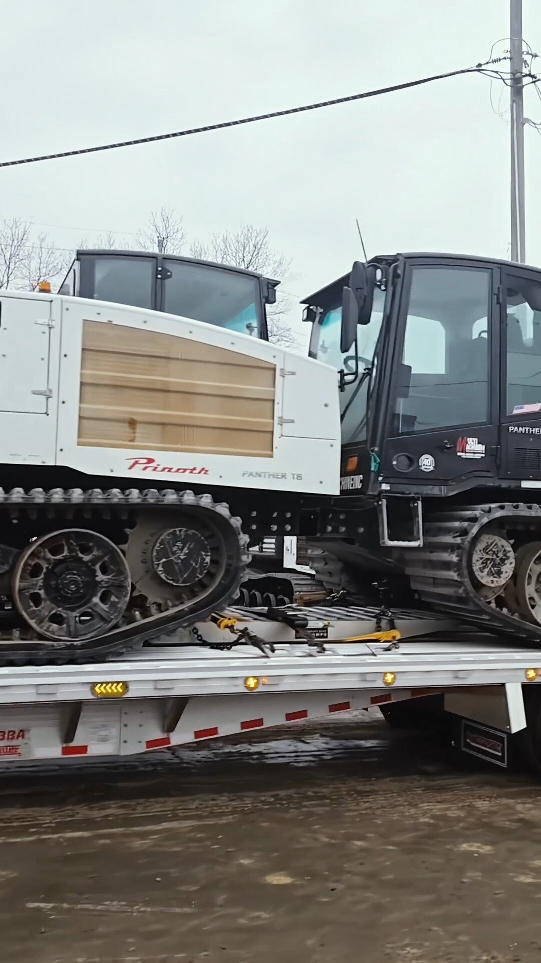 Double #PantherT8 delivery 📦 💥 Our crawlers are headed out to solve the ugly ground problems that slow you down! With straw blowers onboard, they're ready to hit slopes, swamps, and everything in between 🚧 Credits: @multimachineinc 🎥 #Prinoth #prinothcrawlercarriers #construction #truck #trucking #heavyequipment #strawblower #crawler #constructionlife