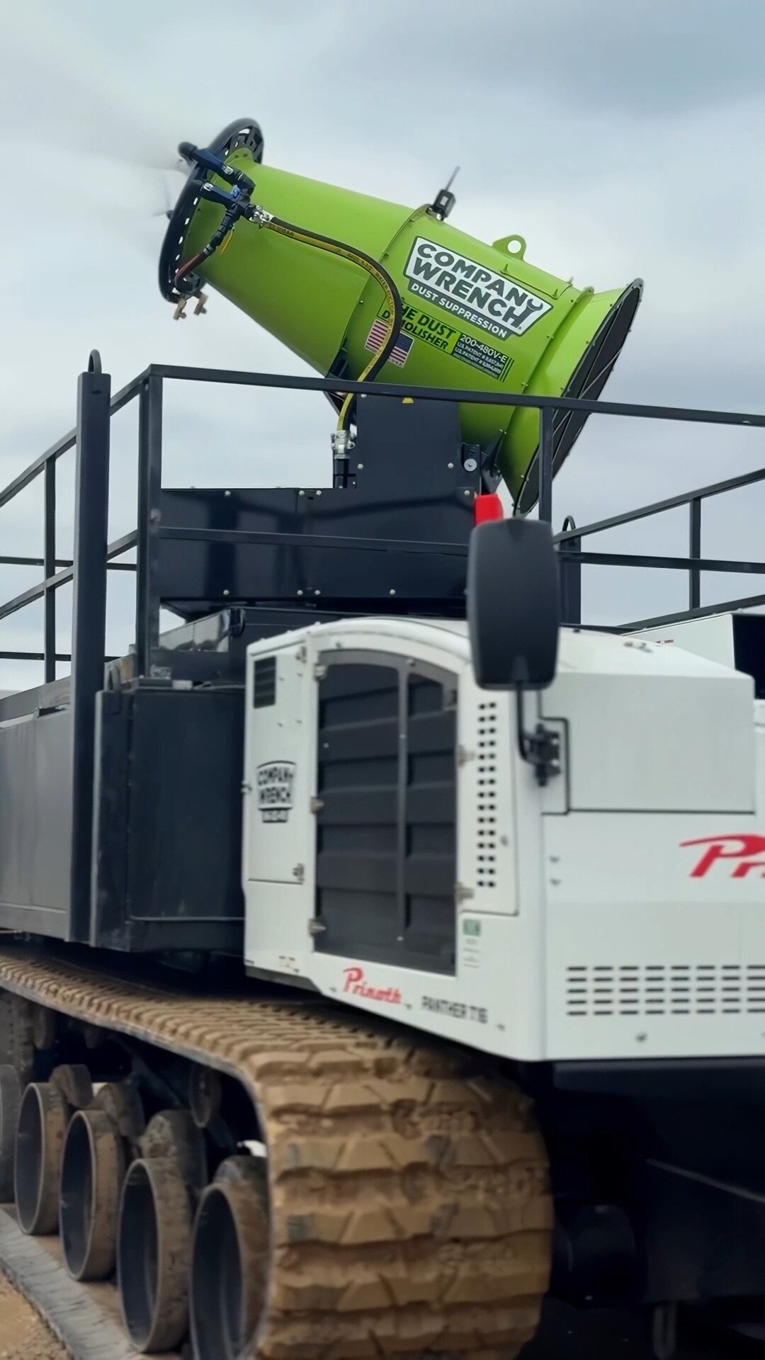 Take this setup to the toughest sites 🏗️ This #PantherT16 gives you tracked power with a water tank onboard, an electric dust demolisher up top, and a generator in the back 💥 It’s dust control on a whole other level❗ Credits: @companywrench 🎥 #Prinoth #prinothcrawlercarriers #dustcontrol #unitedstates