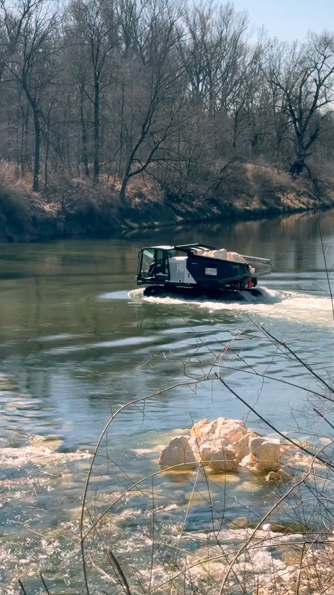 One muddy mission❗ The #PantherT14r keeps you powering through the mud, and the 360° rotating dumper makes shoreline rock delivery efficient and pinpoint precise 🪨 Credits: @multimachineinc 🎥 #Prinoth #prinothcrawlercarriers #mud #rock