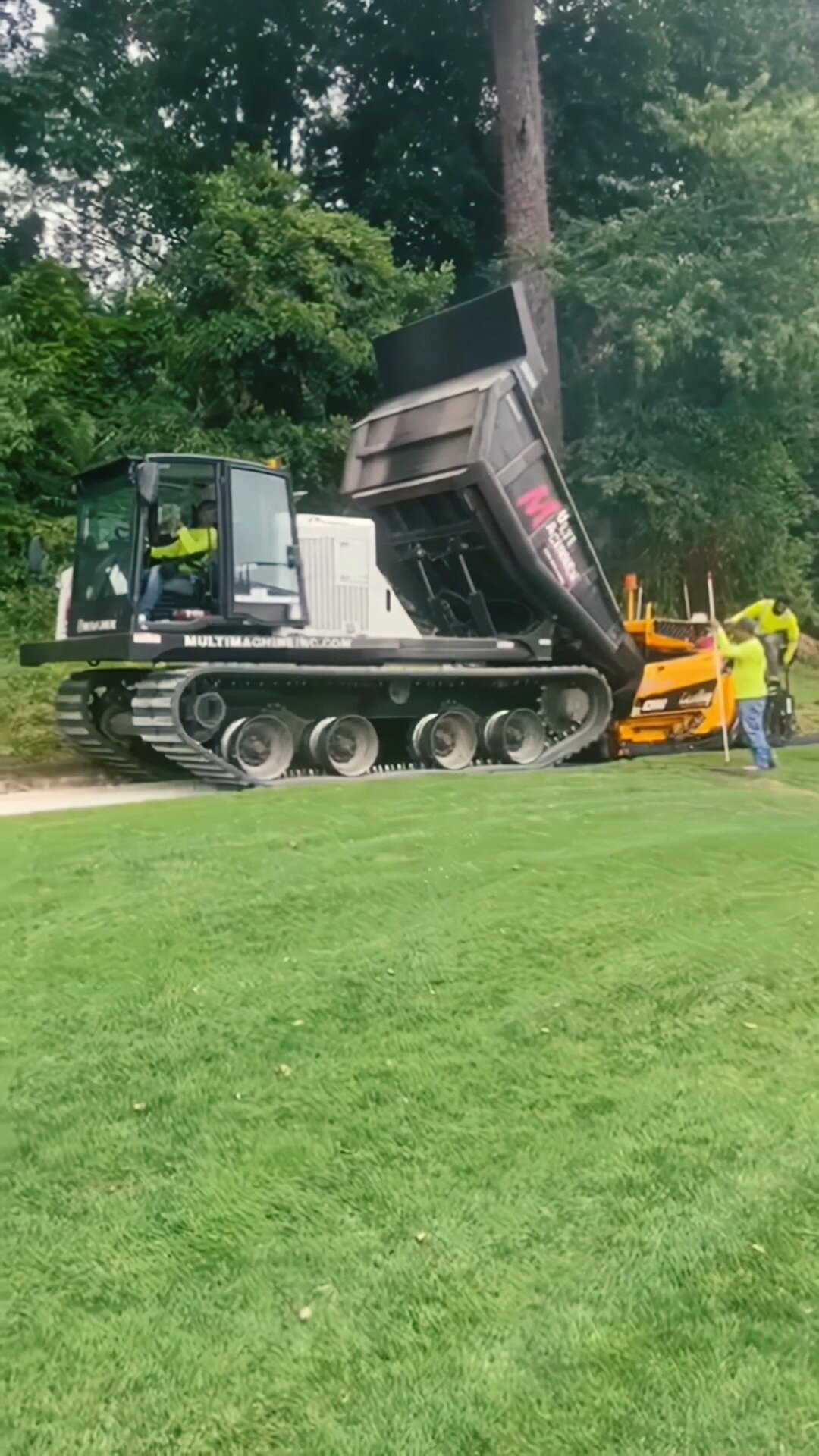 Feeding the paver 💯 The #PantherT14r keeps the paving train on schedule! Its low ground pressure and tracks let you bring heavy material into sensitive areas while keeping ground disturbance to a minimum 🚧 Credits: @multimachineinc 🎥 #Prinoth #PantherT14r #prinothvegetationmanagement