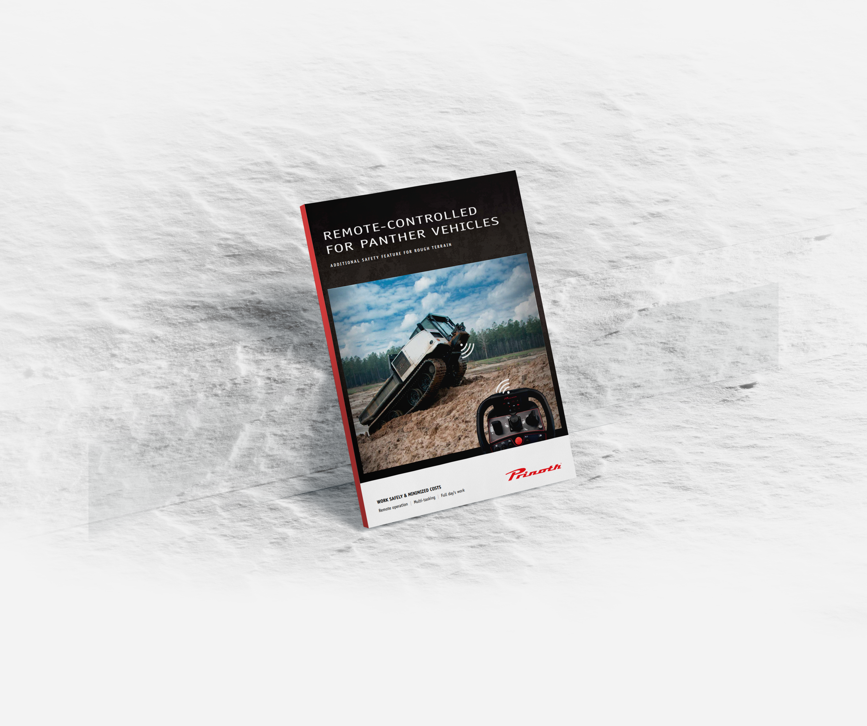 A high battery life capacity of up to 10 hours of runtime before charging enables the possibility of working for an entire day without requiring a recharge. With an impressive working range of 330 feet (100 meters) and safety device functionalities designed for Prinoth Panthers, this new tool guarantees superior protection of your valuable equipment.