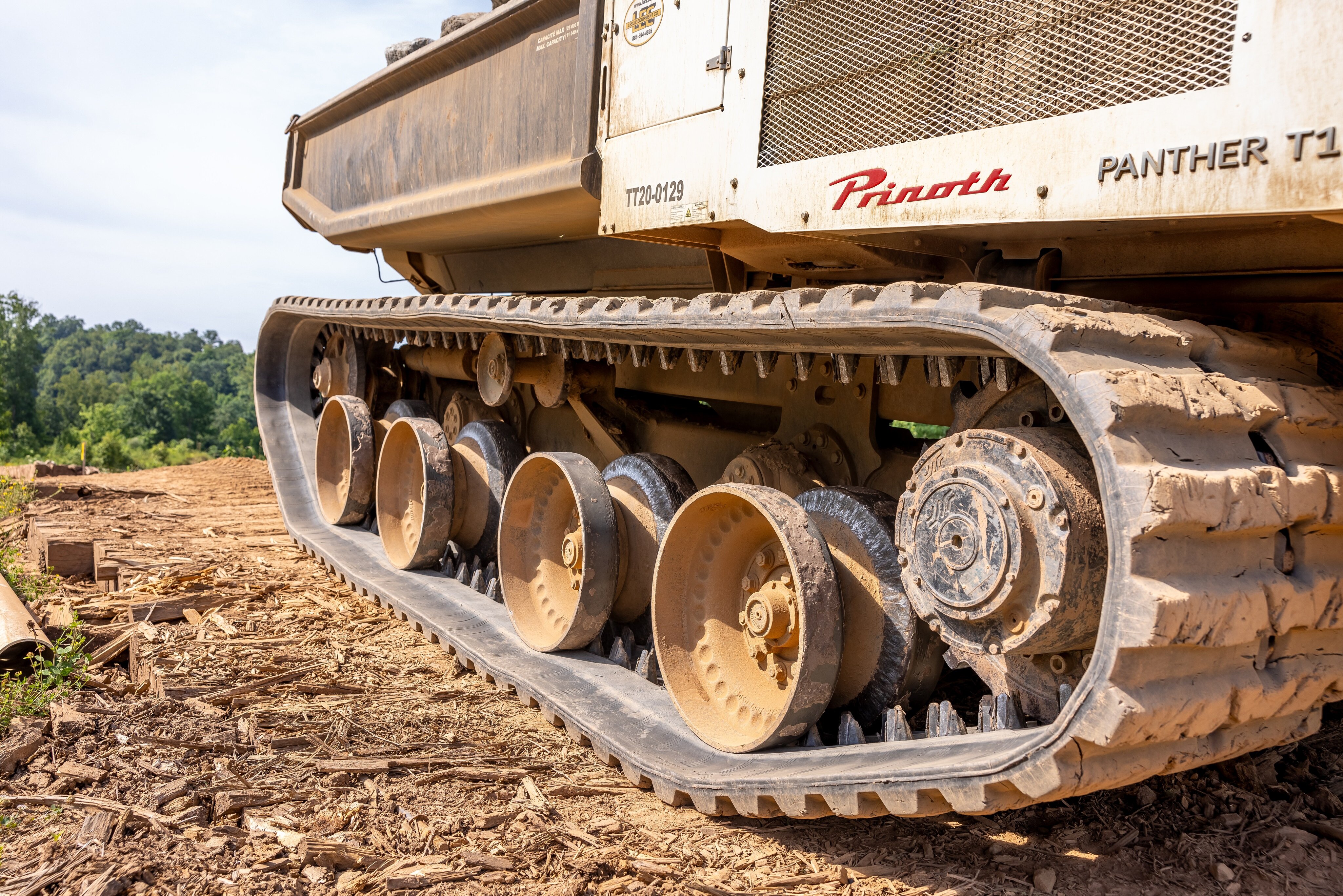 Heavy-duty steel wheels combined with high-travel suspension allow the vehicle to adapt easily to uneven soil, ruts, and ditches. The undercarriage and tracks are self-cleaning for all soil types and weather conditions, while the automatic track tensioning system simplifies maintenance.