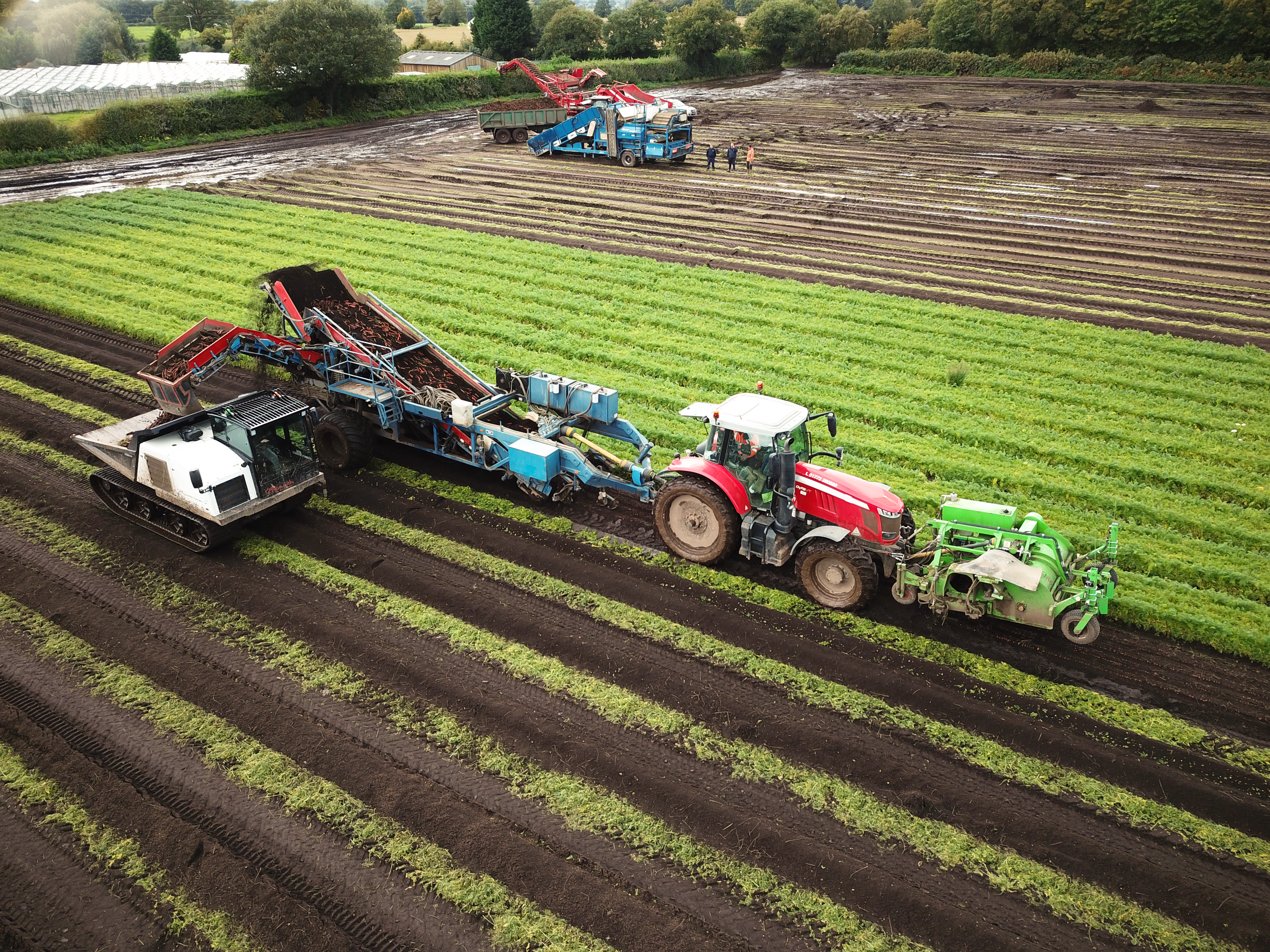 イギリス マンチェスター近郊の農場で、にんじんの収穫作業をしています。
